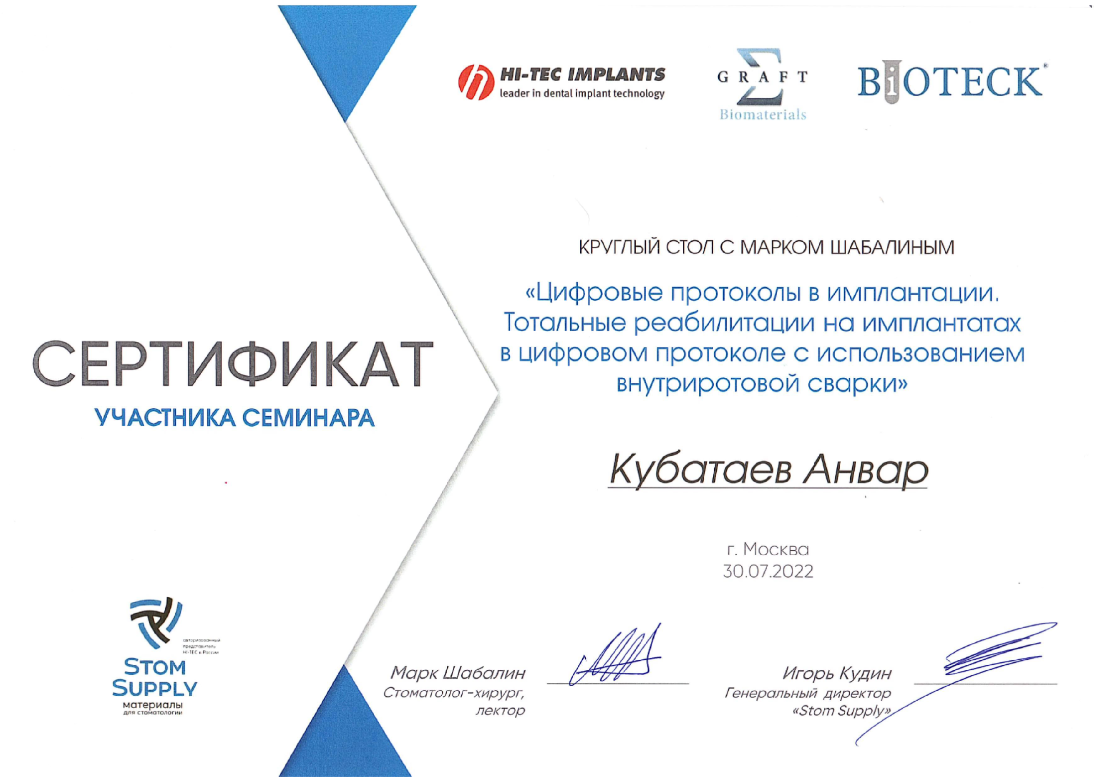 Почему пациенты выбирают Кубатаева Анвара Минкаиловича